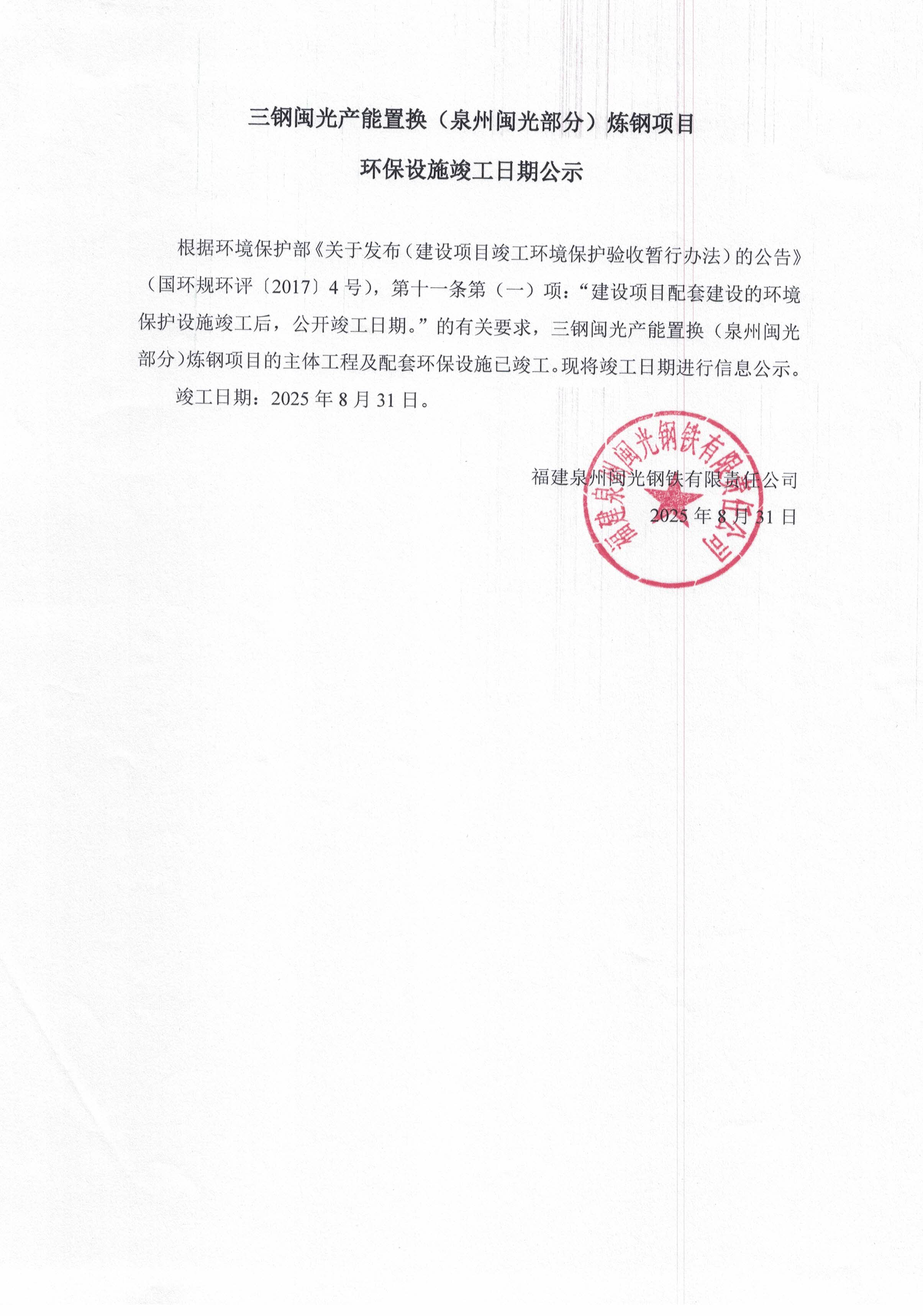 三鋼閩光產(chǎn)能置換(泉州閩光部分)煉鋼項目環(huán)保設(shè)施竣工日期公示