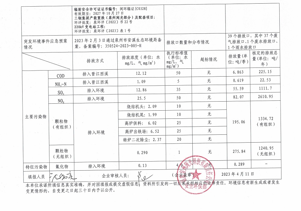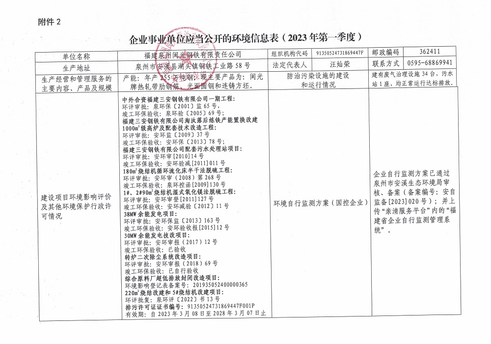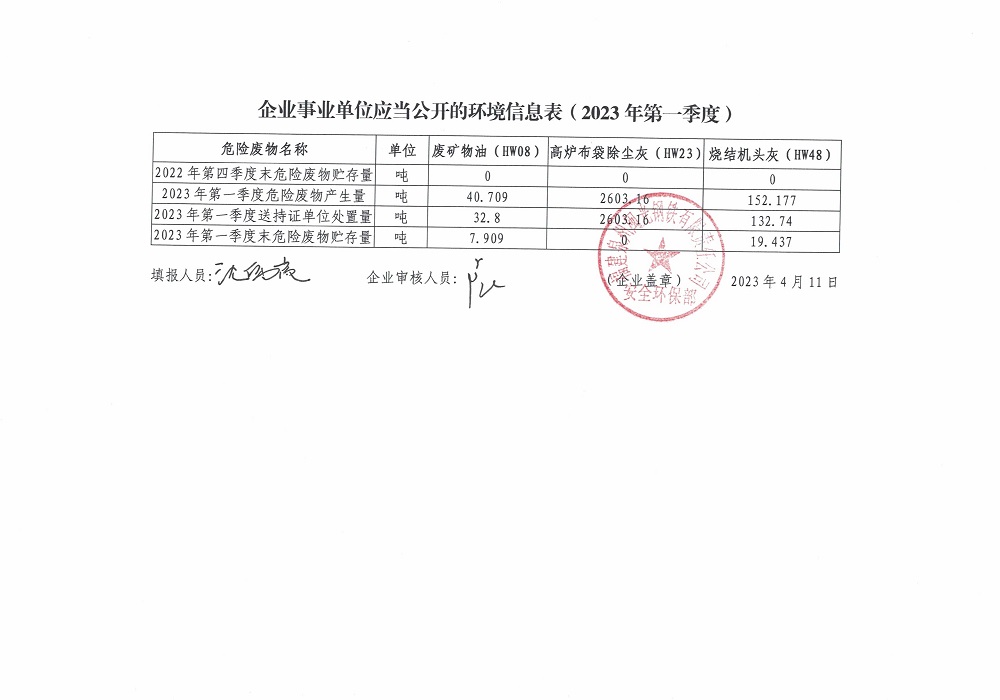 企業事業單位應當公開的環境信息表(2023年度第一季度)