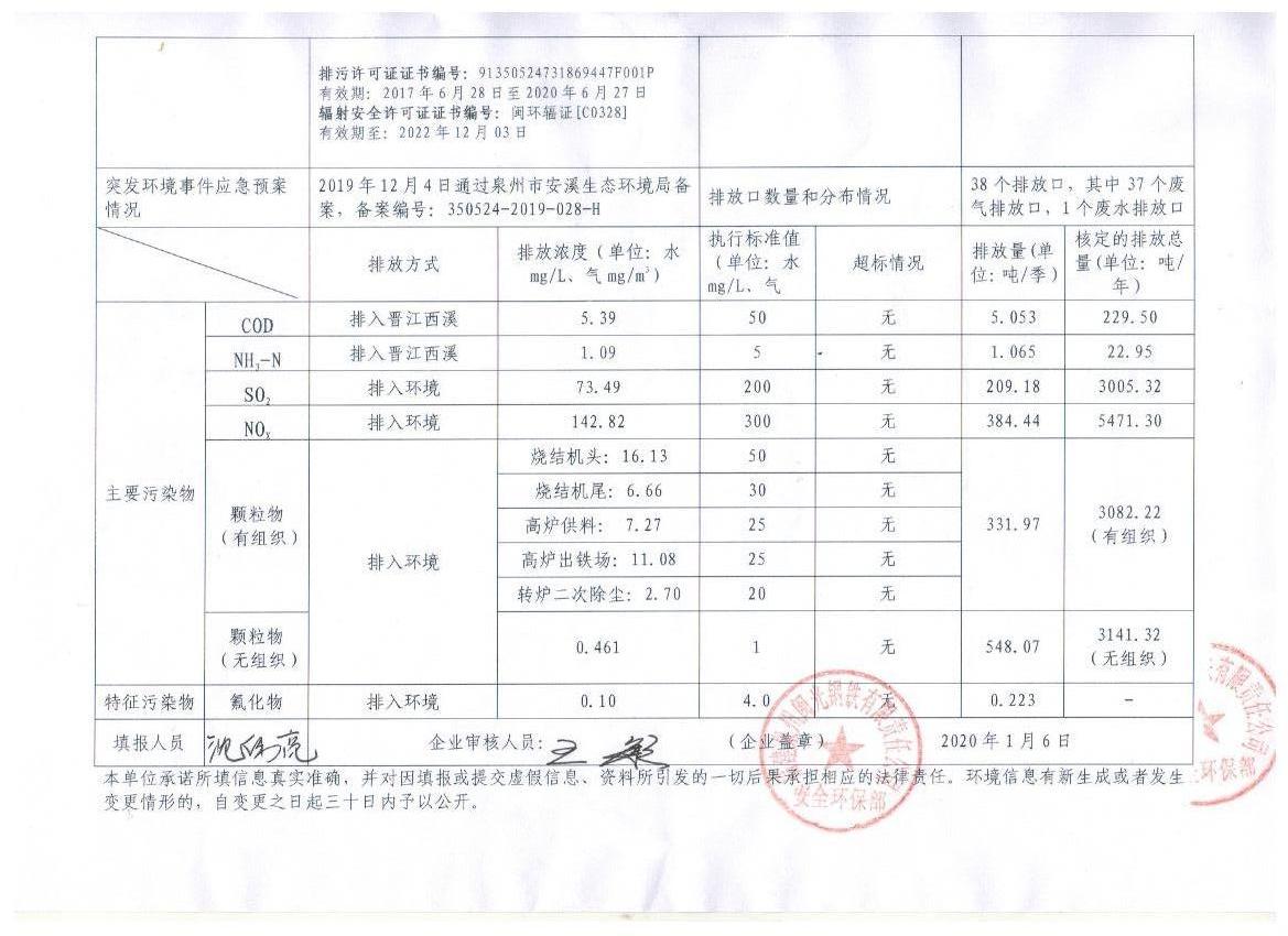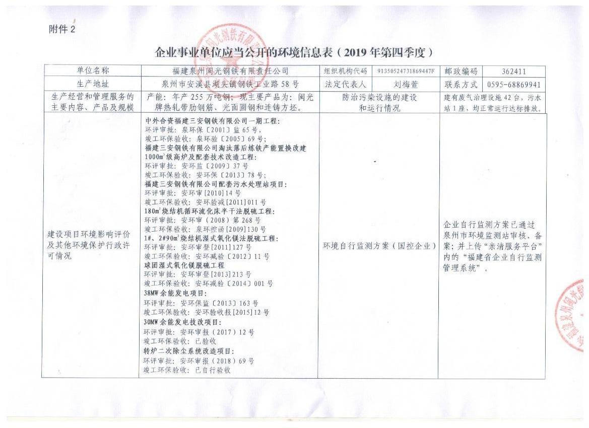 企業事業單位應當公開的環境信息表(2019年度第四季度)