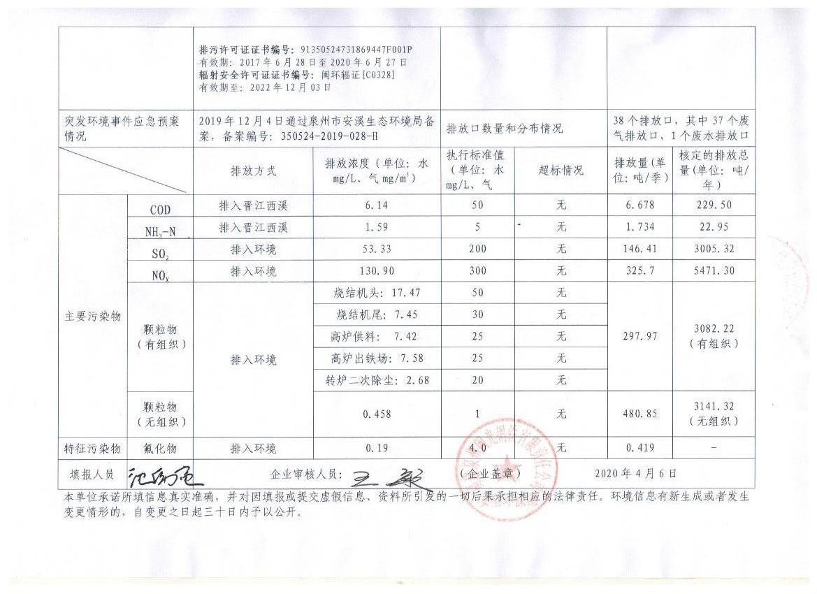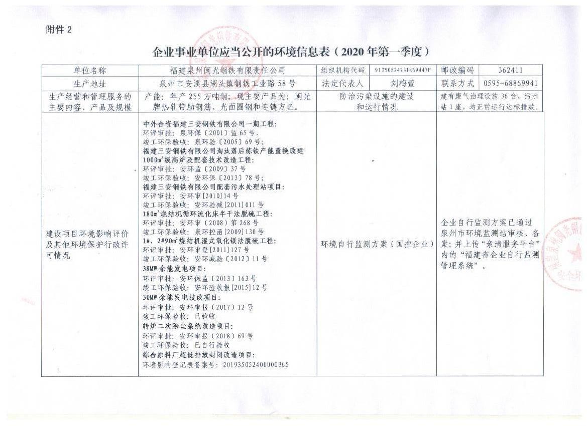 企業(yè)事業(yè)單位應(yīng)當公開的環(huán)境信息表(2020年度第一季度)