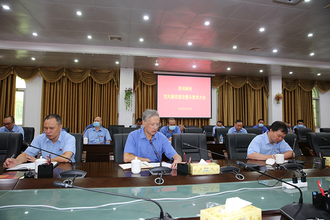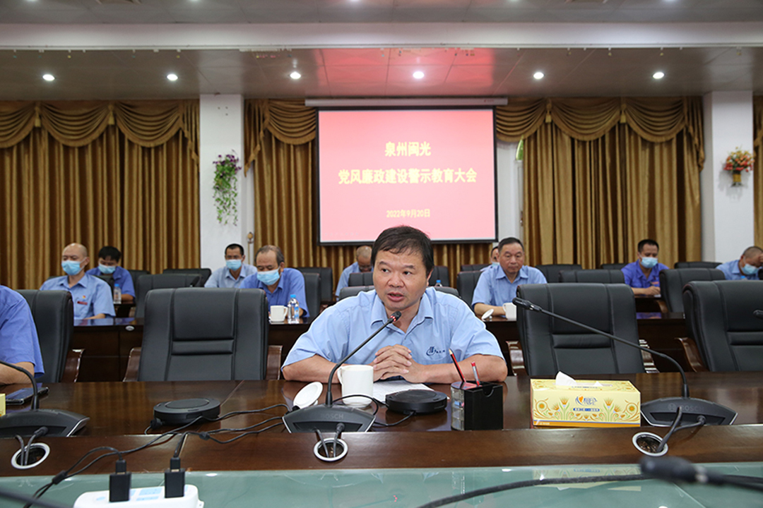 9月20日上午,泉州閩光公司組織召開黨風廉政建設警示教育會,深入貫徹落實中央八項規定精神,集中學習了《中國共產黨紀律處分條例》和上級紀委“中秋、國慶”期間有關紀律文件精神,安排部署“兩節”期間黨風廉政建設工作,為全司黨員干部敲響廉政警鐘。