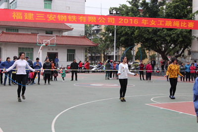 為讓廣大女員工度過一個充實、愉快、富有意義的節日,公司工會于3月15日舉行女工跳繩比賽,比賽分為單人跳繩和團體跳繩。經過激烈角逐,曹麗艷、謝慶紅、趙琴慧分獲單人跳繩前三名,直屬二支部、綜合廠支部、供銷支部分獲團體跳繩前三名。
