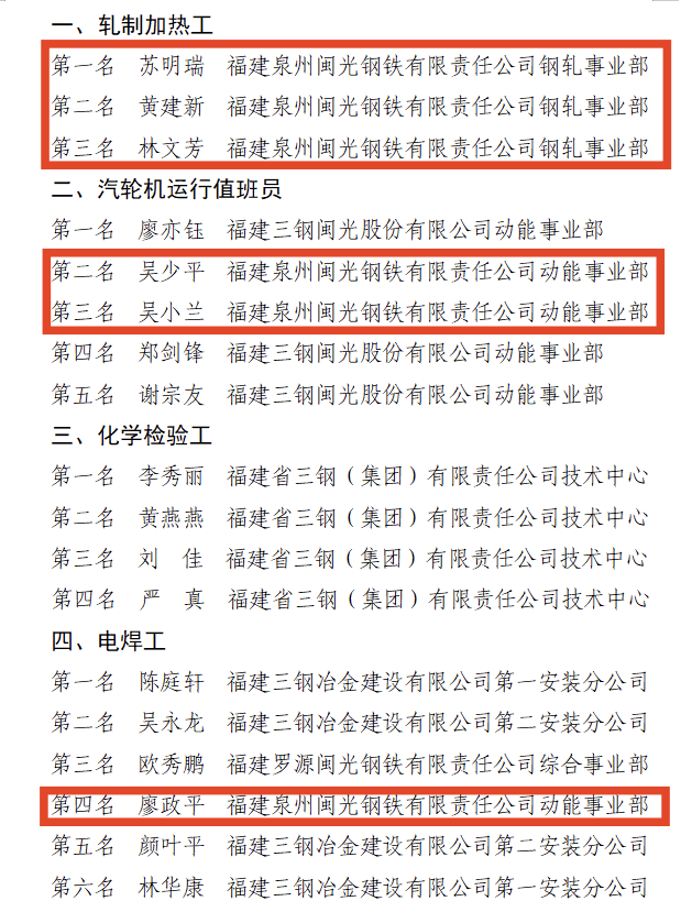 日前,福建省三鋼(集團)有限責任公司與三明市總工會聯合主辦的2025年第八屆福建省三鋼(集團)有限責任公司職業技能競賽圓滿結束,泉州閩光榮獲佳績,其中軋制加熱工包攬該工種前三名。
