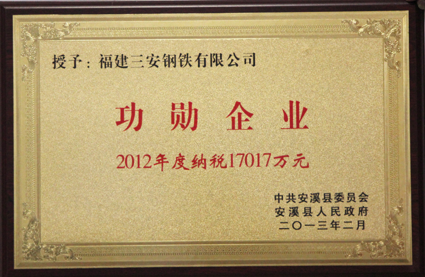功勛企業2012年度納稅17017萬元