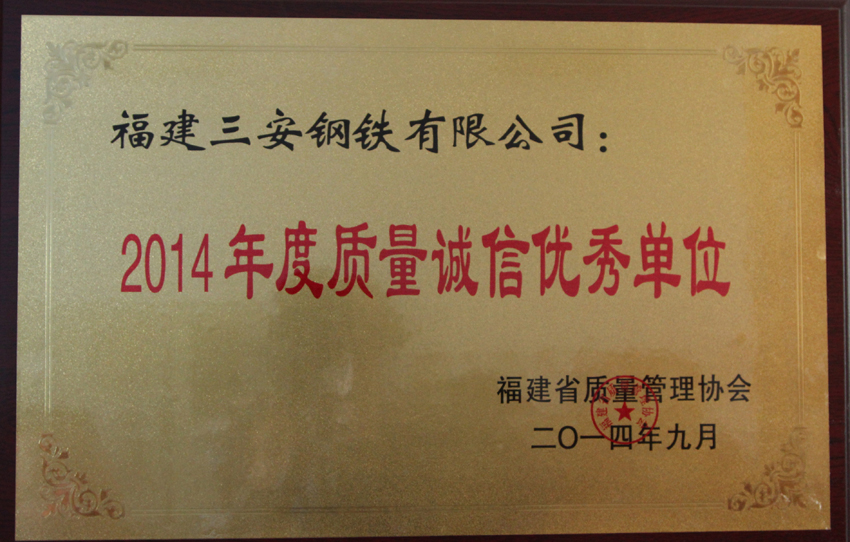 2014年度質量誠信優秀單位